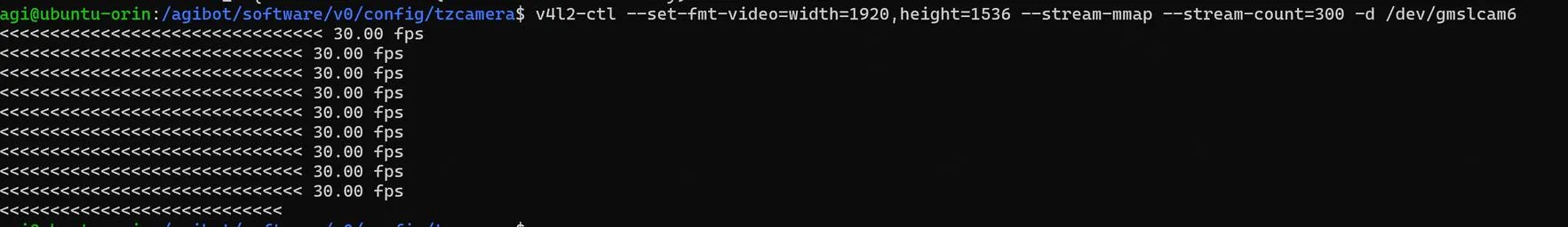 在 ORIN 终端执行以下命令,测试中间交互摄像头(/dev/gmslcam6)是否可被独立访问:
